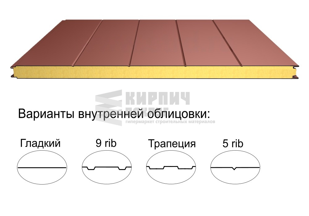 В интернет-магазине "Кирпич Вокруг" Вы можете купить Стеновая трёхслойная сэндвич-панель 5 rib 100мм 1000мм с видимым креплением минеральная вата Полиэстер Доборник в Пскове, а наши специалисты готовы вам помочь с выбором по адресу: , или оказать консультацию по телефону: .